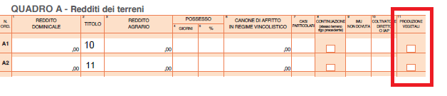 L’inserimento della Colonna 6A servirà per indicare i corrispettivi derivanti dalla cessione di crediti di carbonio in eccesso rispetto ai limiti di reddito agrario.