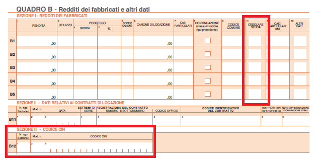 Per quanto riguarda l’obbligo di indicare il Codice Identificavo Nazionale (CIN) per ogni unità immobiliare ad uso abitativo destinata alla locazione per fini turistici, per gli immobili destinati alle locazioni brevi e per le strutture ricettivo-turistiche alberghiere e extralberghiere, nel quadro B è stata aggiunta la Sezione III – “Codice CIN”.