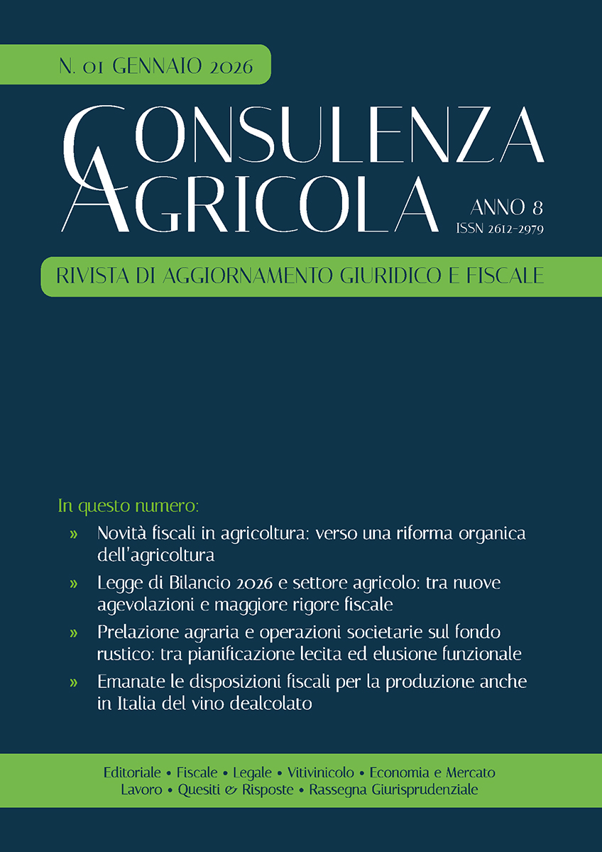 Si tratta di un prodotto editoriale in formato digitale che raccoglie, ogni mese, decine di articoli a firma di alcuni dei più importanti e competenti esperti del mondo dell’agricoltura. Attraverso questi contributi, si analizzano le tematiche più discusse in materia fiscale, contabile, civile, giuslavoristica, economica e del contenzioso.